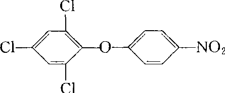 草枯醚chlornitrofen二苯醚类触杀性除草剂。化学名称:2,4,6-三氯苯基-4′-硝基苯基醚。化学结构式如下。原药为黄褐色结晶状粉末,熔点107℃。107℃时蒸气压为46.66 Pa,几乎不溶于水,易溶于苯及甲苯,微溶于醇类。对酸、碱、热稳定。草枯醚在土壤表面形成药层,幼芽与药剂接触后渗入幼芽,经光活化后使杂草中毒死亡。水稻田使用防除稗草、莎草、丁香蓼、鸭舌草、节节菜、碱草、牛毛草、瓜皮草等一年生杂草。草枯醚对大鼠急性口服LD50>10 000 mg/kg,急性经皮LD50>5 000mg/kg,对鱼低毒。连续使用可能引起慢性致畸、致突变。