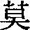 莫❶不,不愿。《小儿则总论》: “宁治十男子,莫治一妇人。” ❷无。《论风毒脚气》: “晋朝仕望,多获全济,莫不由此二公。” 莫 莫56—57在位南匈奴单于。虚连题氏,比弟。即位后称丘浮尤鞮单于。汉遣使赍玺书镇慰,拜授玺绶,给遗甚厚。 ☚ 比 汗 ☛ 莫mò❶没有。如:莫不欣喜,莫名其妙。 ❷不,不要。如:一筹莫展,莫衷一是,莫愁,莫大叫。 ❸表示推测或反问。如:莫非,莫不是。 ❹姓。 莫mòⅠ [书] (没有谁; 没有哪一种东西) no one; none; nothing: ~ 大于此 nothing is greater [more important] than; ~ 之能御。 No one [Nothing] can resist it. Ⅱ ❶ (不) not; no: 一筹 ~ 展 can find no way out ❷ (不要) don't: ~ 提此事。 Don't mention the matter. 请 ~ 见怪。 Please don't mind. ❸ (表示揣测或反问) can it be that; might it not be; is it possible that: ~ 不是 could it be that; ~ 不成 unless it be that Ⅲ (姓氏) a surname: ~ 邪 Mo Ye ◆莫不 there's no one who doesn't or isn't; 莫测高深 too profound to be understood; A more flagrant instance has yet to be found.; difficult to understand; enigmatic; incomprehensible; too high and deep to be measured; unfathomable; 莫此为甚 Nothing [Nobody] is capable of exceeding this.; A more flagrant istance has yet to be found.; Nothing can surpass this.; One can expect nothing beyond this.; There is nothing worse than this.; 莫大 greatest; utmost; 莫尔斯电码 Morse code; dot-and-dash; 莫非 can it be that; is it possible that; 莫过于 nothing is more ... than; nothing is better than; 莫可名状 That cannot be described.; unable to understand; undescribable; unspeakable; 莫名其妙 be rather baffling; be all adrift [abroad]; be baffled; be in a fog; be unable to understand; be unable to make head or tail of sth.; cannot make anything of it; difficult to guess what it is all about; have neither rhyme nor reason; ignorant of the heart of the matter; 莫名一文 penniless; dead block; not have a bean; 莫逆 very friendly; intimate; 莫逆之交 friends with complete mutual understanding; an intimate friendship; become the firmest of friends; be on the best of terms; bosom friends; Damon and Pythias; David and Jonathan; one's intimate friend; 莫惹是非 Let the sleeping dog lie.; 莫如 would be better; might as well; 莫桑比克 Mozambique; 莫斯科 Moscow; 莫须有 unwarranted; groundless; fabulous; fabricated; trumped-up; imaginary; 莫予毒也 a person who looks down upon everyone and fancies that nobody dare do anything to him; be very haughty; Nobody dare harm me.; 莫衷一是 unable to agree [decide] which is right; fail to come to any agreement; no concensus of opinion; (As opinions vary,) no unanimous conclusion can be drawn.; There are endless wranglings and differences over ...; There is no agreement of opinion at all. 莫 莫 (mò) 读暮 (mù)【莫】晚,晚上。 例1 辟如鸣兽,蚤卧蚤起,莫卧莫起。(马王堆医书《养生方》第一卷) 译文 养生要像鸟兽一样,早睡则早起,晚睡则晚起。 例2 莫吞十一丸,服药十日知,小便数多,廿愈。(汉《武威医简》) 译文 晚上吞服药丸11粒,服药10天可痊愈; 如果服药后小便频数量多,20天可痊愈。 例3 先莫毋食,旦饮药。(马王堆医书 《五十二病方》) 译文 先一天晚上不吃东西,第二天早晨服药。 例4 夏日,数沐,希浴,毋莫起,多食采。蚤起,弃水之后, 用水澡, 疏齿, 被发, 步足堂下, 有闲, 而饮水一稖。(江陵张家山汉简 《引书》) 译文 夏天多洗头发,少洗澡,不要贪睡晚起,多吃蔬菜。早晨起来解小便之后,用水洗手,漱口刷牙,披散着头发在堂屋下散步,过一会儿喝水一杯。 例5 呼尽内针,静以久留,以气至为故,如待所贵,不知日莫。(《太素·卷二十四·真邪补泻》) 译文 呼气完毕后进针,静置而久留针,以气至为度,候气像等待贵宾一样,不觉得时间晚。 按 暮,古作莫。甲骨文 《粹》 695: “其莫,不其遘雨。”《佚》 851: “其莫归。” 《诗·齐风·东方未明》: “不夙则莫。”毛《传》: “莫,晚也。” 《释文》: “莫音暮。” 《周礼·春官·世妇》:“大丧比外内命妇之朝莫哭不敬者。” 《礼记·曾子问》: “夫柩之不早出,不莫宿。”《释文》: “莫音暮。”《礼记·乡饮酒礼》: “莫不废夕。”《左传·成公十二年》: “日云莫矣。” 《释文》: “莫音暮,本亦作暮。” 《战国策·秦策四》: “莫不令朝行。”清黄丕烈《札记》: “莫即暮字也。” 《管子·大匡》: “北州侯莫至。” 《论语·先进》: “莫春者,春服既成。” 《释文》: “莫,本亦作暮。”《汉书·西南夷两粤朝鲜传》: “莫不知其兵多少。”颜师古注: “莫读曰暮。”《世说新语·宠礼》: “移晨达莫。” 秦汉以前古籍出现的暮字为后人所改。《庄子·齐物论》:“旦暮得此,其所由以生乎?” 《释文》: “暮,本亦作莫,音同。”《尔雅·释鸟》: “雉之暮子为雡。”《说文·佳部》“雡”字下说解引暮作莫。《史记·外戚世家》: “昨暮夜妄梦苍龙据吾腹。”《汉书·外戚传》暮作莫。 《说文》无暮字。《说文·茻部》: “莫,日且冥也,从日在草中。”本义是黄昏。后来写作暮。《玉篇》: “暮,日入也。” 古音莫、暮皆属明母铎部。 ☚ 见 内 ☛ 莫即“丘浮尤鞮单于”(593页)。 莫mò❶ 莫此为甚|莫措手足|莫敢仰视|莫可端倪|莫可究诘|莫可救药|莫可理喻|莫可名状|莫可奈何|莫可企及|莫可收拾|莫名其妙|莫明其妙|莫能轩轾|莫能自拔|莫逆于心|莫逆之交|莫展一筹|莫之谁何|莫知所措|莫知所谓|莫知所之|莫衷一是