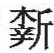 【提示】艹,3画,宋体是一横两竖,楷体第三笔竖改撇; 不要依旧字形写成四笔 ( )。 下左的 “亲”,第七笔是竖钩,第八笔宋体是撇,楷体是点。 *薪xīn16画 艹部 (1) 作燃料的木材: 杯水车~|釜(fǔ)底抽~。 (2) 薪水、薪金的省称: ~俸(fèng)|月~|年~|发~。 薪 ☚ 蕘 蒸 ☛ 薪xīn甲骨文金文象斧斗(“斤”)砍伐树木状,即薪的本字。小篆有薪字。从草头,从新,新亦声。指作燃料的木材。即柴火,劈(pǐ)柴。如:杯水车薪|有积薪之势(指后来在上)。组词如:薪水|薪金。指买柴火的钱,有生活费义。清代以后又简称薪。 薪★常◎常