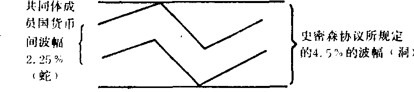 图5-2 可以看出,欧洲共同体6国货币汇率的波动宛如一条蠕动的蛇在史密森协议所规定的较大的波动幅度内爬行。通常习惯上,把史密森协议所规定的固定比价上下各2.25%的幅度,称为地道或洞,而把共同体6国货币间联系更为紧密的波动幅度更小的波动,称为洞中之蛇。因而,这种浮动被称为蛇形浮动,或蛇行于洞中的汇率体制。 当时,欧洲共同体6国之所以要实行蛇形浮动,除了为避免美元危机及汇率剧烈波动造成的损失外,企图摆脱对美元的依赖和削弱美元的地位也是一个重要的原因。 1973年2月,美元经过几次大的危机之后第二次贬值,布雷顿森林体制终于以史密森协议的崩溃而宣告终结。固定汇率制崩溃后,各国都普遍实行浮动汇率,有的是单独浮动,而有的则实行联合浮动。史密森协议所规定的4.5%的波幅限制已无人遵守。但共同体国家仍然维持着汇率波动幅度为平价上下各1.125%的蛇形浮动。不过,蛇虽在,而洞却已不存,这就变成了离洞之蛇了。 蛇形浮动体制是一种可调整的中心汇率制。虽然汇率波动被限制在平价上下各1.125%的幅度内,但这个固定比价本身是可以调整的。由于各国经济发展不平衡,货币之间平价汇率的调整便不可避免。1973年6月,西德马克对参加蛇形浮动的其他成员国的货币升值5.5%,9月荷兰盾也升值5%。1976年10月,蛇形浮动中的货币受到外来投机的冲击,西德马克对比利时、卢森堡法郎和荷兰盾升值2%,对丹麦克朗升值6%。1977年4月和8月,丹麦克朗对其他各成员国的货币两次贬值,幅度分别为3%和5%。到1978年,西德马克又对挪威和丹麦克朗升值4%,对比利时、卢森堡法郎和荷兰盾升值2%。可见,汇率平价也是经常发生变动的。 参加蛇行浮动的成员国也经常发生变动。1972年5月,英国、爱尔兰、丹麦和挪威加入蛇形浮动,但6月又宣布退出。1972年10月,丹麦重新加入蛇形浮动。1973年2月意大利宣布退出。1974年1月,法国由于法郎受到冲击而退出蛇形浮动,1975年7月又加入,但不久又退出。到1978年欧洲共同体筹建欧洲货币体系时,参加蛇形浮动的国家只剩下联邦德国、荷兰、比利时、卢森堡、丹麦、挪威等6个国家。在这中间,非欧洲共同体国家奥地利和瑞士曾于1975年加入,但随即又宣布退出。 蛇形浮动只是一种各国之间松散和自愿的结合,对各成员国并无任何约束力,因而蛇行浮动是不稳固的。尽管如此,蛇形浮动的尝试,为最终建立欧洲货币体系提供了宝贵的经验和教训。1979年3月13日,欧洲货币体系正式建立,标志了蛇形浮动历史使命的终结。 ☚ 联合浮动 逃汇 ☛ 蛇形浮动 蛇形浮动“Snake” Float欧洲经济共同体六国货币在国际货币基金组织规定的波动幅度范围内,实行共同浮动而形成的一个较小的波动幅度。1971年12月的史密森协议,对布雷顿森林货币体系的汇率波动幅度作了修改,将原幅度2%扩大为4.5%。1973年各国实行浮动汇率后,欧洲经济共同体内的联邦德国、法国、比利时、荷兰、卢森堡和丹麦六国实行共同浮动,即在六国之间保持固定比价,把汇率的波动幅度规定为上下各1.125%,即总幅度为2.25%,在基金组织规定的4.5%的幅度内,汇率波动形成一条较小的浮动曲线,犹如“地洞中的蛇”(Snake in the Tunnel),常被称为“蛇形浮动”。汇率波动幅度如下图: