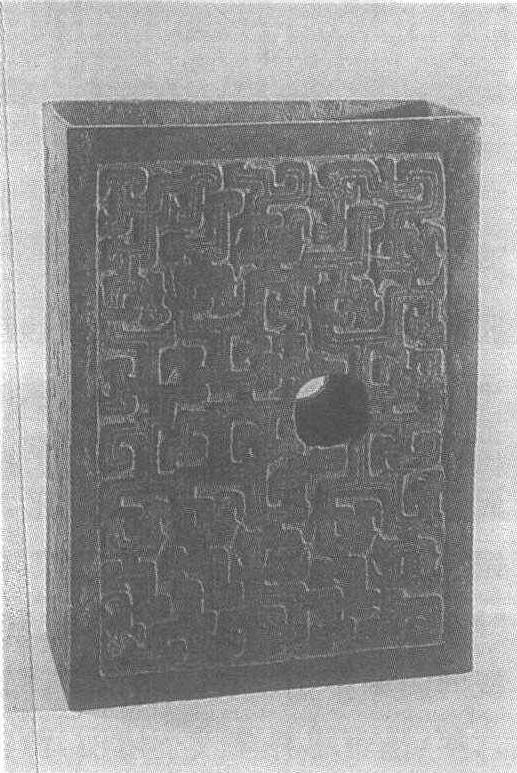 春秋。长31厘米,宽22厘米。1973年至1974年陕西省凤翔县姚家岗出土。陕西省博物馆藏。此构件形似楔形砖,中空,纵断面呈等腰梯形,两面饰蟠螭纹,两面无纹。构件正中偏上有直径4厘米的圆形铆眼,背面亦有铆眼,起固定作用。凤翔秦郡故址三处窖藏共发现铜构件64件,大致可分十类。杨鸿勋先生认为“这些铜件约即汉代所谓的‘釭’,或曰‘金釭’。大型的用途,当属统治阶级宫殿壁柱、壁带之类上面所加的饰件,小型转角一类,内径40—50毫米见方,应是门窗构件。梯形截面一类为四面铜版所构成的箍套,具有衔接木杆件的构造功能。”考古工作者依据地层关系和其它伴出物判断这批铜构件是春秋时代遗物。因此,它对研究秦史、中国古代建筑史都是极为重要的资料。