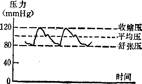 | 释义 | 血压测量 血压测量心脏收缩排出血液进入主动脉,再沿动脉系统分布全身。血液能够不停地向前流动的推动力是左心室收缩时所产生的压力。动脉是具有舒缩弹性的血管,当左心室收缩射血入动脉时,血管一时膨胀,当左心室舒张时血管适当回缩以保持血流能继续向前流动。平时测量的血压是检测血流作用于动脉管壁的压力,通常取肘动脉测量。动脉血压分为收缩压(高压)及舒张压(低压)两个数值,前者反映左心室收缩时推动血液前进的压力,后者反映血管壁的弹性(紧张度)。将一带状气囊带缚裹于上肢,向囊内注气,直至听诊器听不到动脉搏动音时为止,然后再缓慢放气,当听到第1个搏动音响时即为收缩压,其数值由水银柱表示出来;当搏动音随着继续放气而消失时即为舒张压,记录此水平的水银柱数值。正常动脉血压为收缩压90~140毫米汞柱,舒张压60~90毫米汞柱。血压并非恒定不变,随着体位变换、体力活动程度及情绪变化而时时上下波动,只要不超过上述范围均属正常。人体进行较剧烈体力活动或情绪激动时收缩压可以超过正常上限10~20毫米汞柱,随休息而很快回降至正常。收缩压主要反映左心室收缩功能,所以当左心功能减退时会有所降低,但一般不会低至90毫米汞柱以下(所谓低血压状态,不能单纯根据一次收缩压偏低即做出诊断)。当患高血压时,收缩压高是由于血管阻力增加,左心室要加强收缩方能将血液排入动脉,一旦左心衰竭则收缩压会相应降低。舒张压反映动脉的紧张度,所以血压高时舒张压升高的水平更有意义。老年人多有收缩压偏高倾向,乃由于主动脉弹性减退不能顺应扩张所致,但如收缩压超过150毫米汞柱以上则应诊断为高血压。老年人患高血压病时往往以收缩压升高为主或表现为收缩压升高,亦应重视(详见高血压章节)。体质较弱的老年人往往血压在正常范围内的低水平波动,不需要特殊处理,然而生活中应注意勿过快变换体位以防出现体位性低血压。老年人不宜长时间采取下蹲体位,以防血液较多滞留于下肢而影响血压,甚至导致脑供血不全现象。 ☚ 老年人检测保健 脉搏测量 ☛ 血压测量 血压测量血管内的血液在血管壁上的压力,称为血压。每个心动周期中的血压最大值为收缩压,最小值为舒张压。血压的测量,就是采用某种方法和装置,检测和记录收缩压、舒张压等血压数据及血压的动态变化。血压的数值一般表示为绝对压力与大气压之差。血压的单位常用mmHg(Torr)、cmH2O或mmH2O,在标准地心引力下,1mmHg=1.36cmH2O=133Pa。血压测量的压力范围一般为0~3.99×104Pa(300mmHg),频率范围一般为0~20Hz或更宽。典型的血压波形如图1所示。
