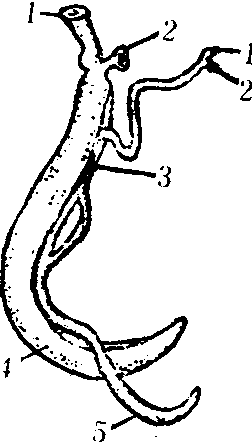 血吸虫 1.口吸盘;2.腹吸盘;3.抱雌沟;4.雄虫;5.雌虫 ☚ 阴道毛滴虫 猪肉绦虫 ☛ 血吸虫schistosome学名裂体吸虫。成虫寄生于人及其他哺乳动物的静脉内,雌雄异体,常合抱在一起。虫卵在终宿主体内因局部组织坏死而脱落,随宿主粪或尿排出,在水中孵出的毛蚴并钻入中间宿主螺蛳体内。尾蚴产生后在水中自由活动,遇哺乳类宿主即钻入其皮肤或粘膜,成为童虫,经移行和生长,最终在门静脉系统、膀胱或盆腔静脉丛发育为成虫。寄生于人体者有6种。我国仅有日本血吸虫一种,引起的日本血吸虫病危害甚大。 血吸虫schistosoma;blood fluke |
