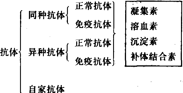 ABH,Lewis及Ii系统特异抗原决定簇示意图 目前尚未发现血型抗原特异性与红细胞的主要生理功能有何重要关系,前者可能是作为红细胞(或各组织细胞)的标志,以利于吞噬细胞与免疫细胞区别“自身”与异物。由于某种遗传缺陷或其他原因,使某些原来被掩盖的抗原物质暴露出来,或使某血型抗原物质分子结构发生微小改变,常可因而产生自身免疫性溶血。 胎儿红细胞各种血型抗原的出现和发展各不同。37天的胎儿可测得A抗原。但用抗A1不能区分胎儿红细胞上的A1和A2,甚至在出生时区分A1和A2也是困难的。6~7周的胎儿即发现了C、D、E、c、e等Rh抗原。9周胎儿可发现M和N抗原,而S抗原在12~17周才发现。 动物也有其特殊的同种抗原,而且也有类似人类血型抗原特异性的抗原。类B抗原几乎存在于所有的动物界,在兔、猪、牛、羊的红细胞上都有类A物质,在兔、牛、羊、大袋鼠的红细胞上都有M抗原。不同种系的蜗牛卵有抗A效应,在几种真菌和鱼类已经发现有抗B。 血型抗体 血型抗体主要是IgG与IgM球蛋白,但也有些抗A、抗B及Rh抗体是IgA球蛋白。血型抗体有的是天然存在的,有的是免疫后产生的。天然存在的抗体大多数系IgM球蛋白,为完全抗体,分子量大,不能通过胎盘,因此不引起新生儿溶血病。这种抗体主要存在于ABO、MN、P及Lewis等血型系统中。免疫抗体最初出现时也是IgM型完全抗体,在免疫后期变为IgG型不完全抗体,分子量较小,可通过胎盘,引起新生儿溶血性疾病,并与输血反应有密切关系。目前认为完全抗体与不完全抗体均为二价抗体,即每个抗体分子有两个抗原结合位点。所不同的是前者较长(950A),在正常状态下,在生理盐水中易于在两个红细胞间搭桥,使之发生凝集。 不完全抗体较短(250),在生理盐水中不能使其另一端达到邻近红细胞上的抗原结合位点,因此不能把邻近的两个红细胞互相连结起来,在生理盐水中不能使红细胞发生凝集反应。但如果用蛋白水解酶破坏细胞膜上的唾液酸,使红细胞表面静电负荷减少,于是红细胞之间互相排斥的力量减小而互相靠拢。胶体介质 (如牛白蛋白、AB型血清、受检者血浆、右旋糖酐、聚乙烯吡咯烷酮、阿拉伯胶、白明胶等)能提高介电常数,亦能使红细胞互相靠拢。在以上两种情况下,不完全抗体就有可能以其两端与相邻两个红细胞上的抗原位点结合形成凝集。此即血型鉴定中木瓜酶(菠萝酶)法和胶体介质法的原理。 多种植物里存在植物凝集素,能凝集人的红细胞,并具有血型特异性。如Dolichos biflorus、Vicia cracea、Vicia villosa、Lathylus sylvestris、白扁豆等有抗A凝集素,其中Dolichos biflorus对A1及A1B红细胞的亲和力比对A2及A2B红细胞强500倍左右。垂丝卫矛叶有抗B凝集素。从豆科植物可以获得抗H和抗A1等凝集素。Ulex europaeus有抗H特异性,Vicia gra-minea有抗N特异性。各种植物凝集素均属球蛋白。 表1 ABO血型系统