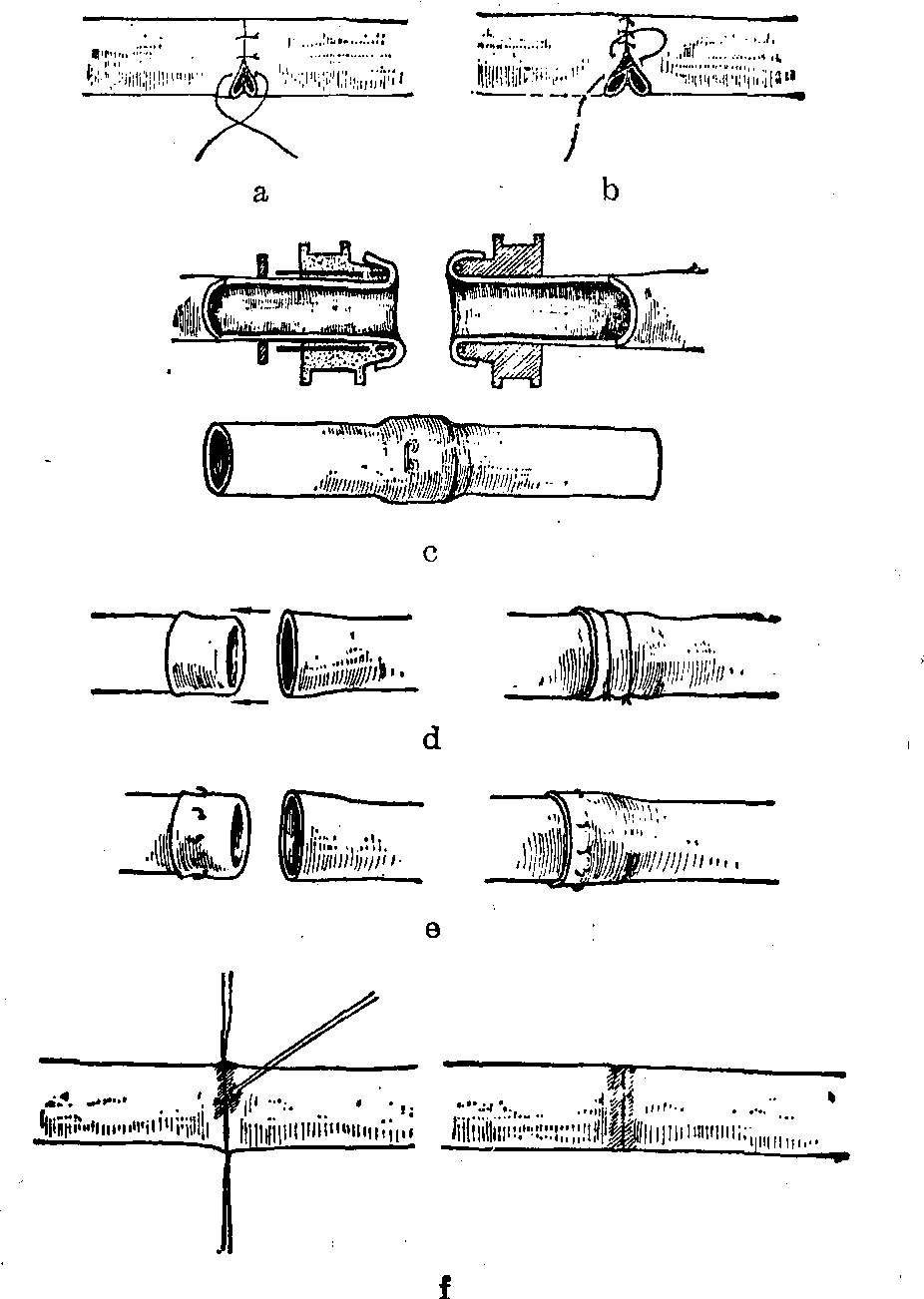 血管吻合术 a.间断缝合 b.连续缝合 c.机械钉扣法 d.套管法 e.套环法 f.粘合法