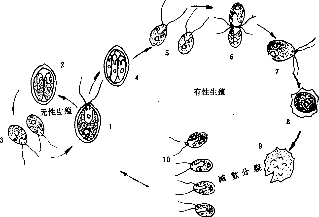 2. 失去鞭毛形成孢子囊,原生质体分裂