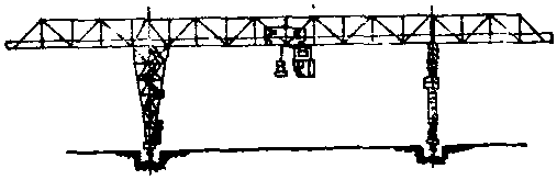 装卸桥 1.起运小车 2.桥架 3.挠腿 4.侧腿 装卸桥 装卸桥一种具有较大跨度,起重小车行走速度较高,主梁分别支承在一刚性支腿和一柔性支腿上的桥架型起重机。如图示。