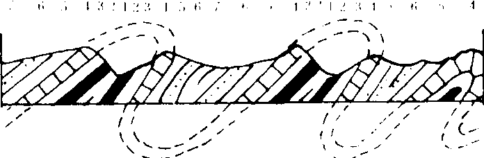 图5 等斜褶曲 1—7. 岩层由老到新