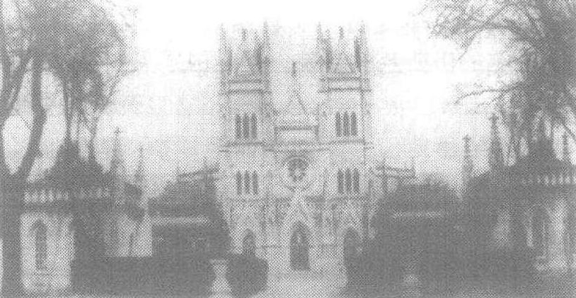 天主教堂。在北京西城区西什库。始建于光绪十六年(1890)。原址在府右街蚕池口,建于清初,称为北堂。因慈禧怕人们从北堂的钟楼上眺望中南海,特找法国公使磋商希望北堂搬迁,为此拨给西什库一带地皮20英亩,迁移费17. 5万英镑,这样北堂就迁建到了西什库。几经扩建成为北京最大的天主教堂。并在院子里保留了原来王公所建的中国传统式亭子等建筑,成为一座中西建筑风格合壁的教堂。