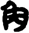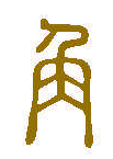 角jiǎo,jué (甲) (篆) 甲骨文为象形字,像牛、羊之角。作意符生成字有解、触等,作声符生成的字有: què 确(正确) jué 桷(建筑用木料,方形的椽子)
