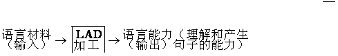 | 释义 | 言语获得的转换生成学说 言语获得的转换生成学说yanyu huode de zhuanhuan shengcheng xueshuo又叫先天语言能力说。美国语言学家乔姆斯基的语言理论。乔姆斯基认为语言是创造的,语法是生成的,人类之所以能获得语言,是因为存在着特殊的获得语言的学习机制。儿童出生后, 从父母和周围人那里听到的句子是非常有限的。可是经过一定条件的学习过程之后,他们就能理解并说出无限的新句子, 而其中大多数是他们从未听过的句子。可见儿童学习语言并不完全是对成人语言的模仿,而是有系统地、有意义地创造自己的语言。乔姆斯基对此的解释是,儿童生下来就具有一种普遍语法。其实质就是一种大脑具有的与语言知识相关的特定状态, 一种使人类个体能学会任何一种人类语言的物理机制及相应的心理机制。人类个体就是凭借这个普遍语法去分析和理解后天语言环境中的语言素材。普遍语法是对于人类个体获得个别语法的共性原则的描写,它本身不会生成任何具体语言。普遍语法寓于个别语法之中。如任何一种语言中的句子(S)都可分解为无序的NP(名词短语)和VP(动词短语)两个范畴,这就是普遍语法的一个原则, 而NP与VP之间的序列关系则是个别语法范围内的规则。儿童言语获得过程,就是由普遍语法向个别语法转化的过程,是由“语言获得装置(LAD)”来实现的。可用下图来说明LAD: