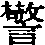 警jǐng❶戒备。如:警戒,警备。 ❷危险的情况或关于危险的情况的提醒、报告。如:火警,警报,告警。 ❸感觉敏锐。如:机警。 ❹人民警察的简称。如:民警,刑警。 警jǐnɡⅠ ❶ (戒备) guard against;garrison: ~ 惕 be on guard against ❷ (使人注意) warn;alarm: 以一 ~ 百 punish one as a warning to others; 以 ~ 将来 serve as warning for the future Ⅱ (感觉敏锐) alert;vigilant: 机 ~ alert;sharp-witted;vigilant;~ 醒 be a light sleeper Ⅲ ❶ (危险紧急的情况或事情) alarm: 报 ~ give an alarm; 火 ~ fire alarm ❷ (警察的简称) police: 交通 ~ traffic police;~ 亭 police box; 民 ~ people's police [policeman] ◆警报 alarm;warning;alert; 警备 guard;garrison; 警察 police;policeman; 警察局 police office; 警车 patrol wagon;black maria;paddy wagon; 警笛 police whistle;alarm whistle;siren; 警方调查 police investigation; 警方证人 police witness; 警告 warn;caution;admonish;warning; 警棍 spontoon; 警号标志 cautionary mark; 警戒 warn; warning; admonish (也作“儆戒”、“儆械”); {军} be on the alert against;guard against;keep a close watch on; 警句 aphorism;epigram; 警觉 vigilance;alertness; 警力 police strength;armed police force [troops];police numerical strength; 警铃 alarm bell; 警犬 police dog;patrol dog; 警探 police-spy; 警惕 be on guard against;watch out for;be vigilant;be on the alert; 警卫 (security) guard; 警醒 be a light sleeper;egersis; 警钟 alarm bell;tocsin 警jǐng ❷ 出警入跸