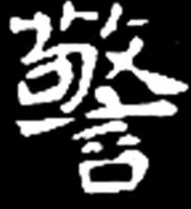 警 金文; 篆jǐng[言(意符)+敬(聲符)→警(《説文》:“警,戒也。從言從敬,敬亦聲。”警,注意可能發生的危險〈警衛、警世〉;需要戒備的事件或消息〈警號、警報、警鐘〉;感覺敏銳,見解獨到〈警句、警覺〉;國家維持社會秩序和治安的武裝力量〈警察、警士〉。)] 老舍《我這一輩子·十三》:“當了十年的差,我才升到頭等警,每月掙大洋九元。” 警 jǐng(19画)