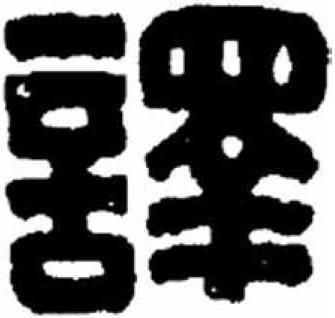 郭店楚墓竹簡·成之聞之27,戰國唯(雖)其於善道也,亦非又(有)譯婁以多也。張家山漢簡·二年律令111,西漢譯訊人爲𧧻(詐)僞, 以出入罪人,死罪,黥爲城旦舂。漢印文字徵譯勝客印。馬鳴寺根法師碑,北魏識非塵幕,悟是梵乘。飾相莊譯,珍麗……華嶽頌,北周莫不乘毳駕風,梯山航海,重譯屈膝,請吏勤王。廣惠塔銘,唐窮象譯之微言,罄龍宫之奥典。《説文》: “譯,傳譯四夷之言者。从言睪聲。”文物中確認用爲翻譯義的“譯”字出現於西漢。除翻譯義外,“譯”還常假爲“繹”。如北周馬鳴寺根法師碑 “莊譯”即“莊繹”。