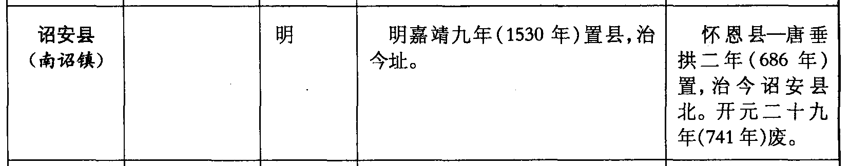 诏安县(南诏镇)明明嘉靖九年(1530年)置县,治今址。怀恩县—唐垂拱二年(686年)置,治今诏安县北。开元二十九年(741年)废。
