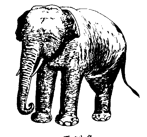 【按】象,《説文》:“長鼻牙,南越大獸,三年一乳,象耳、牙、四足之形。”即今之大象。
