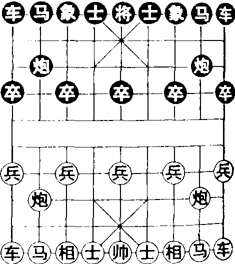 象棋棋盘和棋子 ☚ 围棋 国际象棋 ☛ 象棋 象棋传统棋类游戏。古代亦称“象戏”、“桔中戏”、“象弈”。大约产生于周代,象棋棋子 “将”、“帅”、“车”、“马”、“士”、“卒”等都符合当时兵制。例如周朝军队基本编制“伍”,由五名步兵组成,配合使用弓、殳、矛、戈、戟五种兵器;反映到象棋中,就成了红黑双方各有五个兵 (卒)。《楚辞·招魂》 中有“菎蔽象棋”语,当是最早的有关象棋的文字记载,可见象棋在战国时已初步定型了。南北朝时,周武王亲作《象经》,使象棋逐渐流行。唐代,军队中出现了石炮,象棋中也相应地增加了“炮”,称为“宝应象棋”。唐人牛僧孺撰《玄怪录》载汝南岑顺梦观金象将军与天那军会战,马走日字角,车走直路等步法,已与今象棋步法相同。但唐代象棋中的“鼓”是现代象棋所没有的,当时象棋盘为黑白相间的六十四个方格,近似现代国际象棋的棋盘。宋时又增加了 “象”,至此(11世纪) 象棋定型,女词人李清照《打马图经》中所载象棋盘,与现今棋盘一模一样,当时的铜质棋子,一面是楷书凸字,一面为浮雕图像,名称、数量与现代象棋一致,只“士”为女将图像。象棋由棋盘、棋子两部分组成。正方形棋盘横九道线,竖十道线,中为楚河、汉界,红黑双方隔河列阵相对。每阵中将(帅)于底线居中,两边由近及远依次对称排列士、象 (相)、马、车,马前方横第三道两边各有一炮,第四道相隔排列有五卒(兵)。对局时双方轮流行棋,以围死对方将帅为胜,不分胜负为和。南宋词人刘克庄《象弈诗》中有对象棋七只子的特点及战略战术思想的描绘;宋末元初陈元靓《事林广记》中载有象棋图谱,为我国现存最古老的象棋谱,而流传最广、影响最大的棋谱则是明人朱晋桢所辑的四卷《橘中秘》,一、二卷是全局着法,三、四卷是140局残局,细剖其胜和棋势。明清两代象棋棋坛名家辈出,棋谱大量刊行,也产生了不少象棋专著,如明代祖龙氏的《百变象棋谱》、徐芝的 《适情雅趣》,清人王再越的 《梅花谱》 等。 ☚ 围棋 鹿棋 ☛ 象棋 象棋Xiangqi起源于中国的一种棋戏。历史悠久,棋制多有变迁。《楚辞·招魂》中记载:“菎蔽象棋,有些簿些。”这证明在2000多年前,已经有“象棋”这个名称。北周武帝(561—578),曾制《象经》。文学家庚信曾赋《象棋经赋》及《进象棋经赋》。这时,象棋在宫廷和文人中是很盛行的。象棋定型于北宋末、南宋初,其时即甚流行。宋刘克庄(1187—1269)在五言古诗《象弈》 一章中有: “屹然两国立, 限以大河界”,“三十二子者,一一俱变态”,“远炮勿虚发,冗卒要精汰”,“昆阳以象奔,陈涛以车败,匹马郭令来,一士汲黔在。献虏将笨勋,得隽众称快。”到明、清时代,有关棋书出版得比较多,反映了我国的象棋已发展到一定的水平。 ☚ 围棋 国际象棋 ☛ 象棋中国传统棋种。原称“中国象棋”,1989年为推向国际更今名。棋盘由9纵10横线构成96个交叉点,中隔河界。两人分红黑各据一方对局,各16枚子,为帅将1,士、相(象)、车、马、炮各2,兵卒5。先后交替走子,各种子走法不同,将死或使对方认输为胜,不分胜负为和。源于战国前,棋制多有变迁,近代象棋定型于北宋末南宋初。中华人民共和国成立后列为体育竞赛项目。东南亚亦很流行。 象棋见“体育”中的“中国象棋”。 象棋 象棋是2人对局,模拟两国交战,双方用棋子代替将帅、军师、谋士、兵卒和战车、战马、火炮,在代替战场的棋盘上交战撕杀拼搏,最终以能“将(音jiang)军”对方,使被“将”的将(帅)走头无路而取胜的一种棋戏。象棋起源中国,历史悠久。中国古代早已有棋艺文化,最早为宫廷棋类。春秋战国时代,谋士论战或习攻城之法都与棋道有关。《楚辞·招魂》载:“蓖蔽象棋,有六簙些”。相传古代象棋弈者每方各为6棋子,其名称为枭(作主帅)、卢、雉、犊、塞(两枚)。汉·《说苑·善说篇》记载雍门子周以琴见孟尝君(战国七君子之一):“……燕则斗象棋而舞郑女”。魏晋南北朝时,北周武帝制中国最早一本象棋专著《象经》。《续藏经》载:“昔神农以日月星辰为象,唐相牛僧孺用车、马、将、士、卒加炮,代之为棋矣”,据此推知,唐朝以前象棋无炮,加炮后成为现代象棋雏形。唐·《玄怪录》载:“列马满枰,皆金铜成形”,说明当时棋子制成形象图样,后有出土文物为证。宋·刘克庄《象弈》云:“屹然两国立,限以大河界”,“三十二子者,一一俱变态”,“远炮勿虚发,冗卒要精汰”等句。一般认为到了宋朝时期,象棋广为流传于文人市井之中,棋子用文字代替图样(福建泉州出土文物中有南宋刻有文字的象棋棋子),宋徽宗赵佶在《宫词》中云:“白檀象戏小盘枰,牙子金书字更明。”宋、元时期已形成中国象棋的模式,《事林广记》(宋·陈元靓著)载有象棋全盘着法,棋盘上弈者双方各放棋子16枚;将(帅)1枚,士(仕)、象(相)、车(音ju)、马、炮各两枚,卒(兵)五枚,棋盘9条线位,以及进、退、平的记录方法基本上与现代中国象棋样同。明、清时代,出版的棋书较多,其中以明代徐芝的《适情雅趣》、朱晋桢的《桔中秘》,清朝王再越的《梅花谱》、张乔栋的《竹香斋象戏谱》最著名,标志着明、清时期的象棋艺术已发展到一个新阶段。中华人民共和国成立以后,象棋得到了迅速发展。1956年起,象棋被列为国家体育项目。许多省、市、自治区分别成立了棋类运