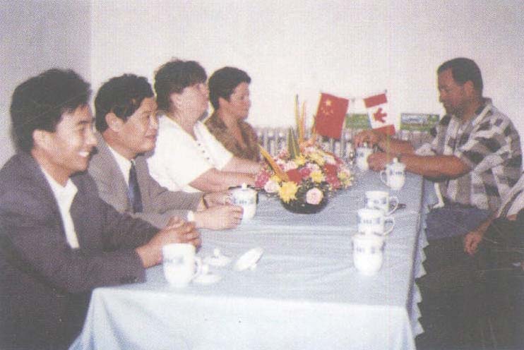 与加方洽谈业务(左1为副董事长田成杰,左2为总经理张志伟)