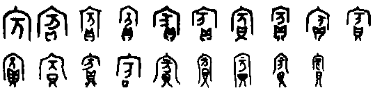 賓賓(𡧍),甲骨文作          ,金文作 ,《説文》古文作 ,小篆作 。 甲骨文字形多種, 各有簡省。 有人認爲, “賓” 與 “𡧍” 并非一字。張玉金認爲,繁體應是早期字形,其形分爲兩大部分,其中第一部分可以理解爲一個會意字,有从宀从人、从宀从元、从宀从兀和从宀从万(不是繁體作 “萬” 的 “万”)四種寫法,而“元”“兀” “万”其實都是 “人”字的變體,所以這四種字形表意相同,都表示人的居處。後世在 “万”上加一曲筆就成了小篆中的“丏”(miǎn)字,則上述字形結構就可以解釋爲从宀从丏,丏亦聲, 字寫作 “𡧍”。第一部分的第二個意符是 “卩”(jié)或“女”,都是雙膝着地、雙脚支臀的人形。“卩” 或 “女” 與上述字形又組合爲一個複合意符,表示人在居所。“賓” 字初文的第二大部分是意符 “止”,“止” 象人脚之形,在甲骨文裏多表示運動中的人或人行走的動作,“止”用在 “賓”字初文裏方向對着表示人在居所意義的複合意符,意思是有人來到主人居所。所以,張玉金認爲,“賓”字初文是从𡧍从卩 (或从女)从止, 𡧍亦聲。整個字的構形意義是主人 (用 “卩” 或 “女” 表示)在他所居住的房屋裏 (用“𡧍”表示)迎接來臨的客人 (用 “止”表示)。本義是迎接、 迎導,引申指賓客,後世分化出表示這個引申義的 “儐”字。因爲賓客來臨要以禮相待,贈以禮物,故又引申爲贈送禮物,又引申指所贈送的禮物。卜辭中多用爲迎導神靈之義。因銘文又用作饋贈或所贈物品等義,故金文增 “貝” 爲意符,就成了形聲兼會意。後世根據字形隸定作 “賓”,漢字簡化後作 “宾”。 楚簡帛文作  ,沿襲古體。 賓 ☚ 貳 貰 ☛ 賓 (bīn)从貝,𡧍聲。 【按】賓,《説文》:“所敬也。”《玉篇》:“客也。” 賓 ☚ 實 履 ☛ 00001435 |
