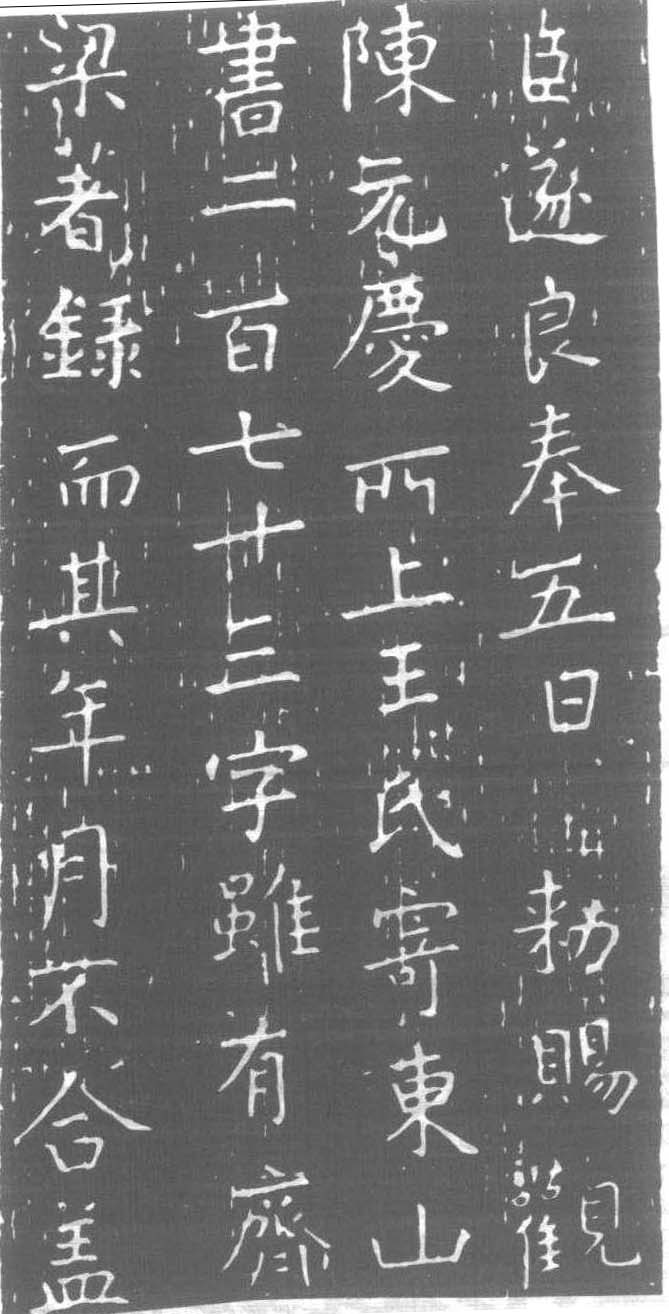 舊題唐褚遂良書,為其奉上奏文。楷書。筆勢挺拔,結構謹嚴。雖頻經模拓,仍不失褚書特徵。刻有 《戲魚堂帖》本、《偽絳帖》本、《鄰蘇園帖》本。