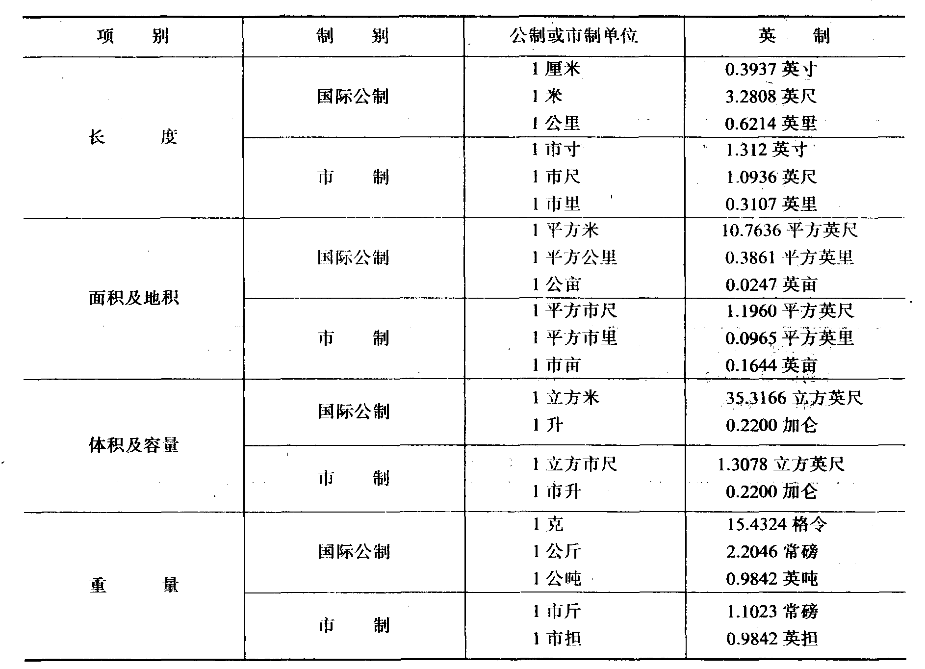 注: 1米=3.125营造尺 1公亩=0.1628营造亩 1升=0.9657营造升 1克=2.6809库平分 1公里=1.7361营造里1公斤=1.6756库平斤