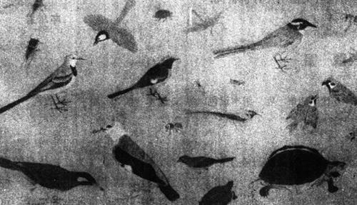 | 释义 | 写生珍禽图 【作品赏析】: 画面描绘了鹡鸰、麻雀、鸠、腊嘴、龟、蚱蜢、蝉、蜜蜂、牵牛等二十多种昆虫、动物,但各自独立存在,不是有统一构思的创作,而是一幅写生作品。 五代是传统花鸟画走向成熟的时期,但流传下来的真品极少,因此这件写生画就具有珍贵的价值。 强调真实描绘,重视形似、质感,是这一作品的突出特色。你看那龟甲多么坚硬,似乎可以敲出声来!蝉翼的透明、麻雀展翅欲飞的姿态,都活灵活现,使人觉得它们是有生命的。早期花鸟画重视写生,要求严格的写实能力,由此可知一斑。 。【作者介绍】:黄筌(公元十世纪)字要叔,成都人,任西蜀画院“翰林待诏”,并主持画院。 花鸟、山水、人物俱精,尤以花鸟为最。他师刁光胤、孙位等,转益多师而自成一家。 画史传说他画六鹤于殿壁,竟引来真鹤与之为伍。蜀主孟昶即改殿名为“六鹤殿”,这故事也说明黄筌的写实画风。他由于生活于宫廷画院,所画多为宫苑内珍禽异兽、名贵花木,其画法多淡墨细钩,然后重彩渲染,沈括说他“妙在傅色,用笔极精细,几不见墨迹,但以五彩布成,谓之写生。”(见《梦溪笔谈》)这种画法叫做“双钩填色”,是传统工笔花鸟画的主要手段。黄筌的画风,以富丽、浓艳、工细为主调,代表著画院的风貌。但记载说,他也能信笔涂沫,画出“笔意豪放,脱去格律”的作品,可见他又是一位多能的艺术家。历代对黄筌颇多评论,如“富艳生动,旷古无对,盖边鸾之后,一人而已”(张丑);“自古写生家无逾黄筌,为能画其神,悉其情也”(文征明),评价甚高。 。
