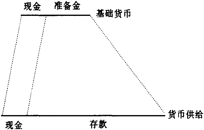 第一,准备金率re越小,货币乘数mn越大。因为商业银行每一单位的准备金可以支持1/re单位的存款。 第二,现金—存款比率cu越小,货币乘数mn越大。因为cu越小,基础货币中的现金比重就越小,准备金的比重就越大,以现金形式存在的基础货币只能转化为一单位的货币供给 (注意这里的现金指流通于银行体系之外的现金,商业银行的手持现金属于准备金),而一单位准备金形式的基础货币可以支持1/re单位的货币供给。 通过分析货币供求均衡和基础货币供求均衡可以推导出货币乘数。首先,考察货币供给和货币需求之间的均衡,货币供给为M,而货币需求为存款D加上现金CU,因此,货币供求均衡表达式为: M=D+CU= (1+cu) D (1) 其次,基础货币的供给B由中央银行提供,需求来自于公众对手持现金的需求CU和加上商业银行对准备金的需求RE,因此基础货币供求均衡表达式为: B=RE+CU= (re+cu) D (2) 供求均衡时的需求反映了公众意愿的现金—存款比率和商业银行意愿的准备金率。 那么,当 (1) (2) 两式同时成立时,货币供求处于均衡状态,用 (2)式除以 (1)式得出货币乘数mn: