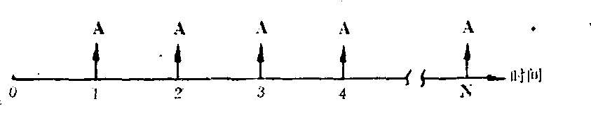 图2-6 支付期中各期的间隔时间应相等(如一年);每次支付的时点都在期末。等年值流图示如图2-7: