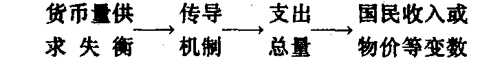 撇去内在传导机制的假说不谈,通常认为,货币存量变动对总体经济的影响和扩散作用过程,可用下一简式表达: