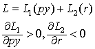 鲍克尔和托宾对L1进行了修改,修改后的L1不仅是py的递增函数,而且是r的递减函数,托宾还对L2进行了修改,修改后的个人行为模式不是“要么持有债券,要么持有货币”,而是“债券和货币都占一定的份额”,以便无风险的货币和风险大的债券的安排能使总资产的风险较小而收益较大(托宾的这一思想以后成为另一理论——资产选择理论的基础)。 修改后的凯恩斯式货币需求函数——凯恩斯派的货币需求函数——可一般地表示为: