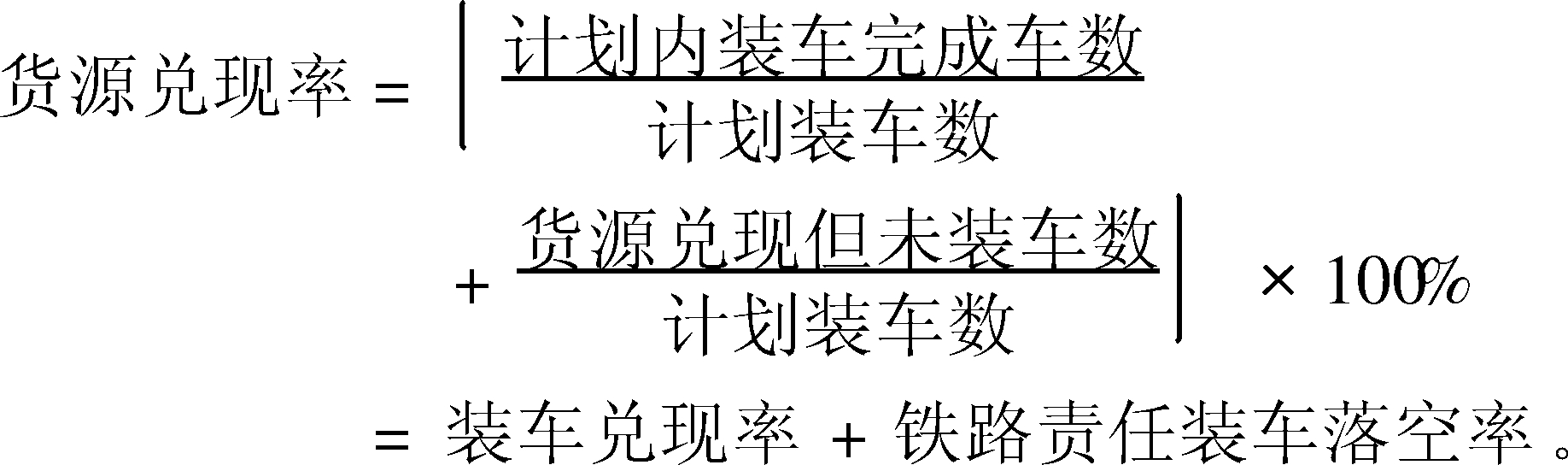 车站、铁路分局、铁路局或全路在一定时期内,货源兑现的车数占计划车数的百分率。分为日历装车货源兑现率、旬计划货源兑现率、月计划货源兑现率。只要发货单位货源可以兑现,不论是否能够按计划装车,应计算为货运兑现车数。计算公式为: