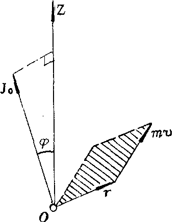 ❷对定轴的角动量等于质点对轴上任一点的角动量对该轴的投影(见图2),表示为Jz=Jzcosᵠ。其中Ja为质点对Z轴的角动量,Jo表示质点对Z轴上某一定点o的角动量的大小,ᵠ角为Z轴正方向与Jo的夹角。对轴的角动量是代数量,其正负由ᵠ角决定,cosᵠ> 0时,Jz>0;cosᵠ<0时,Jz<0,cosᵠ=0时,Jz=0。角动量的单位有千克·米2/秒(kg·m2/s)等。
