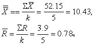 摘自 Beyer WH: Handbook of Tables for Proba-bility and Statistics,second edition,p 454,CROPress,Inc.,1979 例2 对一种标准试液中某物质含量测平行样5次,结果如表3,试绘制质量控制图以便对准确度与精密度进行评价。 表3 五次测定平行样的均数与极差