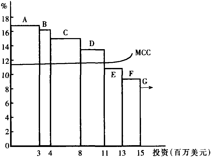 图1 具体的投资方案 资本预算工作对企业未来的发展关系重大,因而要涉及到计划、生产、销售、会计、技术和采购等许多部门的活动。由于投资方案中的收益流量和资金成本的计算中都带有不确定性,因而投资决策是一个十分复杂的过程。但从经济上讲,所遵循的原则仍为边际原则(边际收益等于边际成本),不过这里的边际收益为投资收益率,边际成本为企业的资金资本。可用图说明这个原则。图1中横轴为全年投资额,纵轴既表示资金成本的百分数,又表示投资方案的收益率。图1中的长方形为投资方案,例如方案A的支出为300万美元,预期收益率为17%;方案B的支出为100万美元,预期收益率为16%;等等。最后的投资方案G是购买利息率为4%的国库券,购买量不受限制。图2把图1信息概括为一条平滑的投资机会曲线,标为IRR,即内部收益率。MCC曲线为资金的边际成本,即每多筹集1美元投资所需支出的成本,如图1所示,在企业投资增量1 300万美元以前,边际资金成本保持在10%以上,超过1 300万美元,资金成本开始上升。企业为了获得最大利润,应采用投资方案A、B、C和D,放弃投资方案E、F、G,即共投资1 100万美元。图2表明企业的投资额为Q*美元,在这里资金的边际成本为12%,与最后采用方案的投资收益率相同。 ![]() 图2 平滑的投资机会曲线 资本预算工作是一个十分复杂的过程,实际上几乎要用到管理经济学的全部理论和方法。其主要步骤为: ❶估计未来的需求; ❷确定经营的成本函数; ❸预测现金流量; ❹确定资金成本(包括债务成本和股本成本); ❺事后审计。 ☚ 逆向选择 β系数 ☛ |