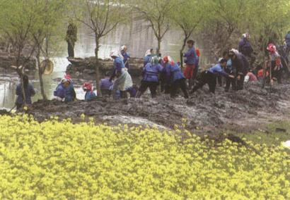 近年来,中国政府在广大农村地区开展环境优美乡镇、生态文明村等创建活动,推动农村环境综合整治。 目前,全国有178个乡镇获得“全国环境优美乡镇”称号。国家重点在“三湖”地区和长江三角洲、珠江三角洲、黄河三角洲地区,开展畜禽渔养殖污染、面源污染的综合防治示范。 一些省市加大村庄环境整治力度,完善农村基础设施,在农村生活污水、垃圾和农业面源污染治理方面取得了一定进展。 近年来,国家兴建各类农村饮水工程80多万处,解决了6700多万农村人口的饮水困难和不安全问题。 开展全国土壤污染调查和污染防治示范,建立农产品安全检测和监管体系;加强农药和化肥环境安全管理,推广高效、低毒和低残留化学农药,禁止在蔬菜、水果、粮食、茶叶和中药材生产中使用高毒、高残留农药;防止不合理使用化肥、农药、农膜和污灌带来的面源污染,保证农产品安全;开发生产新型安全优质高效饲料,提高饲料吸收利用率,减少养殖产品药物残留和有害物质的排放;推广畜禽粪便综合利用和处理技术,鼓励建设养殖业和种植业紧密结合的生态农业工程。  贵州安顺的农村妇女清理淤泥,清澈家乡的河水。 |