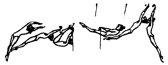 ☚ 背对低杠,反握后撑站立,跳起前回环上成后撑   跳起转体180°低杠屈伸上转体360°换握高杠成悬垂 ☛