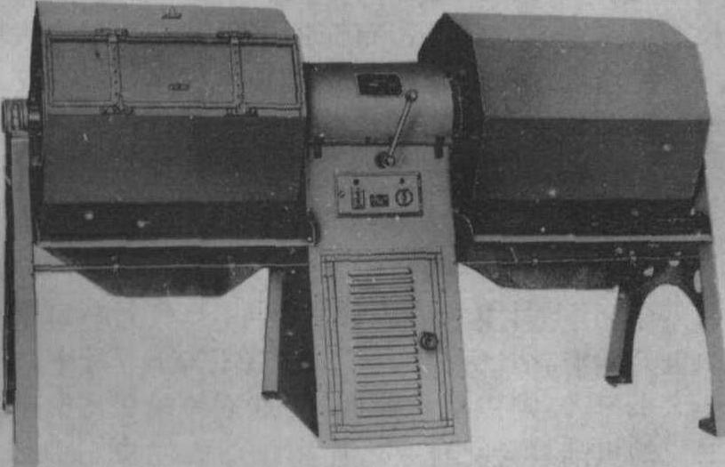 880型车色机 车色机tea polishing machine又称滚筒车色机。绿毛茶精制中复火滚条或补火车色的机械。全机由转筒、机架及传动装置等部分组成。转筒用钢板卷成八角形空心筒,中心线处安装转轴。工作时,茶叶投入转筒内,电动机驱动转筒旋转,茶叶在筒内翻滚与筒壁磨擦,达到磨光、紧条作用。车色机有加温与不加温两种。后者称冷车,只起车色作用;前者称热车,除车色外,并有干燥作用。 |