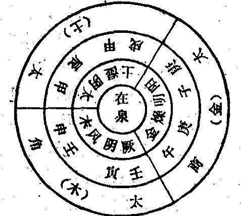 五运主运图 从上图看出,要了解主运的具体内容,必须首先弄清以下几个问题。 五音建运 五音,即宫、商、角、徵、羽。宫为土音、商为金音,角为木音、徵为火音,羽为水音。由于五音亦生于五行之气,所以它们亦分别属于五行。角者,触也,由阳气的触动而发生,木亦是由阳春之气发动而生者,所以角为木之音。徵者,止也,阳盛而极,物盛则止,火为盛阳之象,司炎暑之令,所以徵为火之音。宫者,中也,为中和之义,惟土居中央,化生万物,所以宫为土之音。商者,强也,为坚强之义,五行惟金最坚刚,所以商为金之音。羽者,舒也,阴尽阳生,万物将舒,惟水令具有这种生机,冬尽春回,水能生木,所以羽为水之音。将五音与十天干的五运联系起来,称为“十干建运”。宫为土音,建于土运,为十干为甲己;商为金音,建于金运,在十干为乙庚;羽为水音,建于水运,在十干为丙辛; 角为木音,建于木运,在十干为丁壬;徵为火音,建于火运,在十干为戊癸。 太少相生 由于十干有阴阳之别,五音建于五运,亦应有阴阳的区分,据《素问·六元正纪大论》所述,它是以“太”和“少”来分辨五音的阴阳。如: 十干以甲、丙、戊、庚、壬为阳,乙、丁、己、辛、癸为阴,在阳干则属太,在阴干则属少。故甲己土均为宫音,阳土甲为太宫,阴土己为少宫。乙庚金均为商音,阳金庚为太商,阴金乙为少商。而辛水均为羽音,阳水丙为太羽,阴水辛为少羽。丁壬木均为角音,阳木壬为太角,阴木丁为少角。戊癸火均为徵音,阳火戊为太徵,阴火癸为少徵。五运的相生,既为木生火,火生土,土生金,金生水,水生木。五音既建立于五运之中,当然亦必以五运之相生而生。但除此而外,另有一太少互为相生之义存乎其中。所谓太少相生亦即阴阳相生。试以甲己土年为例,甲为阳土,土生金,便是阳土生阴金,于五音便是太宫生少商; 金生水,便是阴金生阳水,也就是少商生太羽;水生木,便是阳水生阴木,也就是太羽生少角;木生火,便是阴木生阳火,也就是少角生太徵;火生土,便是阳火生阴土,也就是太徵生少宫。己为阴土,土生金,便是阴土生阳金,也就是少宫生太商;金生水,便是阳金生阴水,也就是太商生少羽;水生木,便是阴水生阳木,也就是少羽生太角;木生火,便是阳木生阴火,也就是太角生少徵;火生土,便是阴火生阳土,也就是少徵生太宫。如此太少相生,往复无穷,以推衍运气阴阳的种种变化。太为有余,少为不足,不仅纪主运是如此,中运、客运,亦各有太少相生之义。兹图示如下: