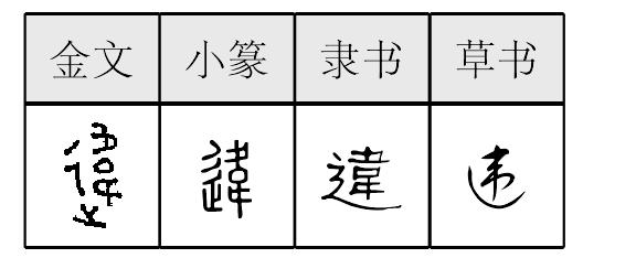 【提示】辶,3画,上面一点;旧字形4画,上面两点。辶的第二笔,宋体是横折,楷体是横折折撇。 *违(違)wéi7画 辶部 (1) 离别;离开: 久~。 (2) 背离;不遵守: ~背|~反|~法|不~农时。 违違wéi战国时或用韦(韋)字。西周到现在作违(違)。从辵(chuò,走路),韦声。《说文》说是离别义。如:久违(久不见面)。又为背,反,不遵守义。如:违法|阳奉阴违。组词如:违背|违反。 违違★繁◎常★常