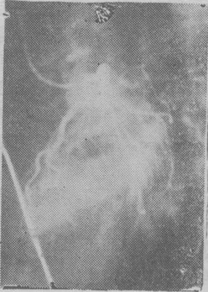 图1乙 Bourassa选择性左、右冠状动脉造影心导管 图示心导管顶端的形态,左为左冠状动脉造影心导管,右为右冠状动脉造影心导管。 (2) 经皮股动脉穿刺法:本法操作比较简便,双侧造影成功率在98%以上,故目前应用较广。所用心导管为顶端具有特殊弯度的Jud-kins或Bourassa心导管(图1)。按股动脉穿刺施行逆行性左心导管检查法穿刺股动脉,将导引钢丝置入股动脉内,拔出穿刺针,并套上短而较硬的聚四氟乙烯扩张导管,沿钢丝送入动脉以扩张动脉穿刺口后,拔出此扩张导管,将左侧冠状动脉造影心导管套在导引钢丝尾端上,沿钢丝一直将此心导管的顶端送到皮肤小切口处,此时钢丝的尾端必需露出心导管尾端之外,在钢丝的导引下,操纵心导管,使其经股动脉的穿刺口进入动脉。其后即在X线透视下将心导管逆血流经髂动脉、降主动脉、主动脉弓而送达升主动脉。拔出导引钢丝,用50ml注射器接上心导管尾端,不断地缓慢注入含肝素的生理盐水,使心导管内腔保持畅通。病人转左前斜位,将心导管慢慢向前推送,按此类心导管顶端的弯度,其顶端将指向左侧抵住升主动脉的左侧壁(即内侧壁)慢慢下降,一般较易于进入左冠状动脉开口,如未能进入可将心导管后撤,重新再推送,在推送过程的同时将心导管略作顺钟向转动,探索冠状动脉口。据作者等对30余例尸检的观察,左侧主动脉窦位于左侧后部,右侧主动脉窦位于前部,冠状动脉开口的水平在离窦底1.5~2cm之间。在X线下左侧冠状动脉口的位置约在第六胸椎下缘,左心缘的肺动脉段和左心室段交界处水平附近,右侧冠状动脉口较左侧者略低,约在右侧大血管阴影和心缘交界以下1cm处。当判断心导管顶端已进入左冠状动脉口而心电图未见异常发现时,可通过心导管快速注入2~3ml造影剂,在X线透视下观察该侧冠状动脉是否显影,如显影说明心导管顶端确在冠状动脉口内。乃将心导管位置固定。选好X线投照角度,准备好急救措施,在心电图连续观察下,用手推注射法向心导管内迅速推注76%泛影葡胺或66%泛影葡胺和10%泛影钠合剂,一次造影用6~8ml,并进行快速连续摄片或电影摄影,一般取右前斜位20~25°,左前斜位60~70°和侧位,必要时加正位投照。左侧冠状动脉造影完毕后,将心导管迅速撤离冠状动脉口,心导管尾端接上注射器继续注入含肝素的生理盐水,待心导管顶端撤到髂动脉附近时,即向心导管腔内送入导引钢丝; 然后将心导管全部抽出,留下钢丝在动脉内,换用右侧冠状动脉造影心导管继续检查。推送右侧冠状动脉造影心导管时,心导管顶端越过主动脉弓后,按Bourassa心导管的弯度,其顶端将指向右侧抵住升主动脉的右侧壁(即外侧壁)缓慢下降,落入右冠状动脉开口;按Judkins心导管的弯度,其顶端达主动脉窦底部之上3~5cm处时,需缓慢将心导管作顺钟向转,并继续推送,使顶端转向右(外)侧,并落入右冠状动脉口。确定心导管顶端已进入右冠状动脉后,按前法进行造影。由于每次造影注入的造影剂的剂量不大,故可多次注射从不同角度进行摄照,以取得最满意的显影(图2)。造影完毕,拔出造影心导管,局部压迫止血。 ![]() 图2 用Judkins导管进行选择性冠状动脉造影,心导管顶端进入左 (上图)、右(下图)冠状动脉口示意 心导管顶端落入冠状动脉口后不宜继续进入太多,以免阻塞该动脉引起心绞痛、心肌梗塞或严重的心律失常。心导管推送过程中可作血管腔内血压测定,但如无必要不必反复测定,以防心导管内血凝阻塞。心导管如屡次推送均未能入冠状动脉口,则宜更换另一种大小规格的心导管。注射造影剂前先给病人含用硝酸甘油片,以改善心脏血供。但在疑有冠状动脉痉挛的病人,造影前不宜用硝酸甘油含片。在造影过程中心电图可有特异性的改变,若两侧冠状动脉供血范围约略相等时,造影剂注入左冠状动脉将有暂短的类似左束支前分支阻滞的改变;造影剂注入右冠状动脉时则有暂短的类似左束支后分支阻滞的改变,一般不到半分钟即可消失。此外,可有窦性心动过缓、窦性暂停、P波减低、房性或室性早搏、短阵室性心动过速、短阵交接处性心律、房室传导阻滞以及Q-T间期延长等,偶有心室颤动或心脏停搏。 术后处理与左心导管检查和选择性左心造影相同。 选择性冠状动脉造影时两侧冠状动脉可以分别显影,观察其分布、病变及其程度、侧支循环和有无畸形等,拍摄条件优良的X线片可以看到0.6mm以下的细小分支,故对冠状动脉疾病的诊断极有参考价值(图3、4)。 一般认为下列情况可考虑进行选择性冠状动脉造影: ❶冠心病病人准备施行手术治疗,术前需要了解冠状动脉病变情况者; ❷准备施行人造瓣膜替换术而需了解冠状动脉情况者; ❸主动脉-冠状动脉旁路手术后仍有症状,需随访移植血管通畅程度者; ❹临床疑有冠状动脉畸形或其他冠状动脉病变者; ❺个别临床怀疑有冠心病,但尚未确诊,确有必要肯定或排除诊断者。近年有用带球囊的导管置入冠状动脉使之扩张以治疗冠状动脉粥样硬化者,称为经皮血管内冠状动脉扩张术。
