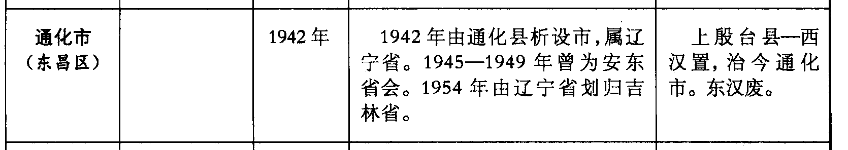 通化市(东昌区)1942年1942年由通化县析设市,属辽宁省。1945—1949年曾为安东省会。1954年由辽宁省划归吉林省。上殷台县—西汉置,治今通化市。东汉废。