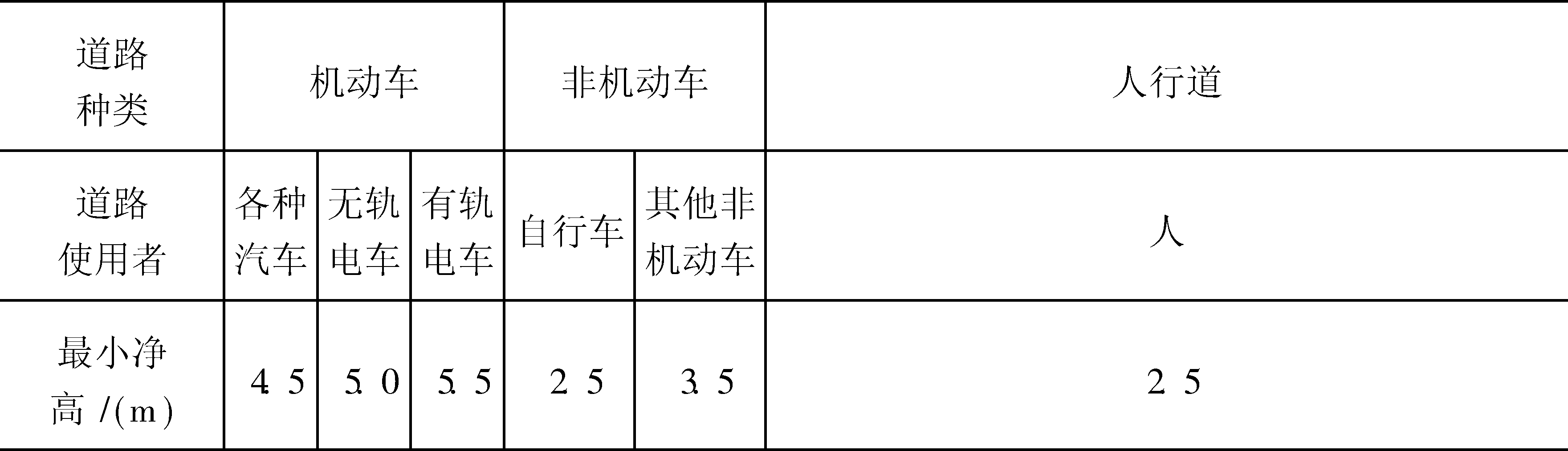 | 字词 | 道路净高 |