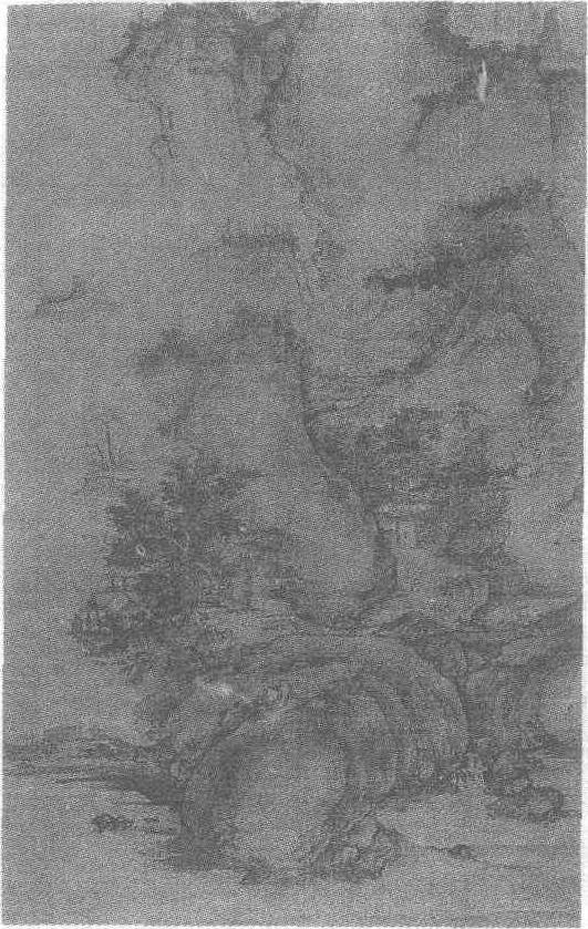 北宋。郭熙(见《郭熙早春图轴》条目)绘。绢本设色。纵109.8厘米,横54.2厘米。江苏省南京大学历史系藏。这是一幅布局深宏、描绘细腻的全景山水。图中雄峰大岭拔立江边,巍峨高耸,气势雄浑。巨壑宽谷迂回折转于峰峦之间。山间林木苍翠、枝繁叶茂,山庄、庭院、水榭、亭台掩映其中。一条山路行人点点,蜿蜒而上通入幽谷之中。山脚溪水潺潺,汇入宽阔浩渺的江中,江水伸向远方,在尽端山谷中飘散出来的浓雾中隐没。近处水滨泊着渔舟,几个渔夫正在卸船。老人们闲坐在大树之旁谈笑,儿童则在土坡上奔跑嬉闹。小小的山村弥漫着浓郁的生活气息。用笔精细,山石以云头皴出,墨色清淡、润泽。是郭熙的精心之作。