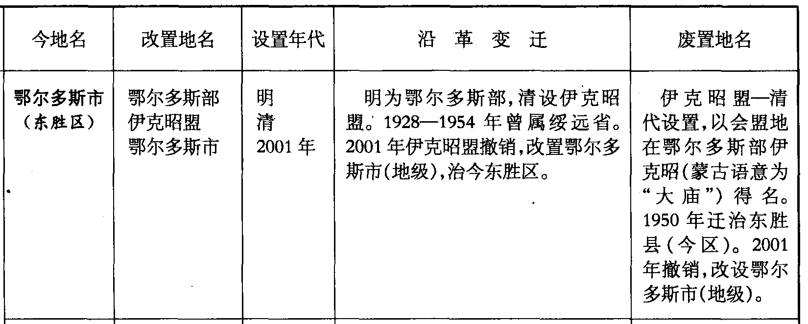 鄂尔多斯市(东胜区)鄂尔多斯部伊克昭盟鄂尔多斯市明清2001年明为鄂尔多斯部,清设伊克昭盟。1928—1954年曾属绥远省。2001年伊克昭盟撤销,改置鄂尔多斯市(地级),治今东胜区。伊克昭盟—清代设置,以会盟地在鄂尔多斯部伊克昭(蒙古语意为“大庙”) 得名。1950年迁治东胜县(今区)。2001年撤销,改设鄂尔多斯市(地级)。