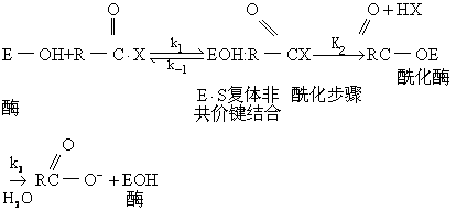 酶作用的反应历程 兹以水解酶糜蛋白酶为例说明酶作用机理: 糜蛋白酶催化蛋白质及氨基酸酯与其他羧酸衍生物的水解。 ![]() 水解脱酰步骤 酶活性中心的丝氨酸羟基参与反应过程。 ☚ 酶作用物复体 酶反应动力学 ☛ |