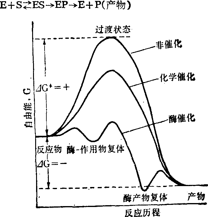 | 释义 | 酶作用机理 酶作用机理从化学反应历程看,酶发挥催化作用须先与作用物结合成复体(见“酶作用物复体”条),然后再逐渐变化,可以简写如下: