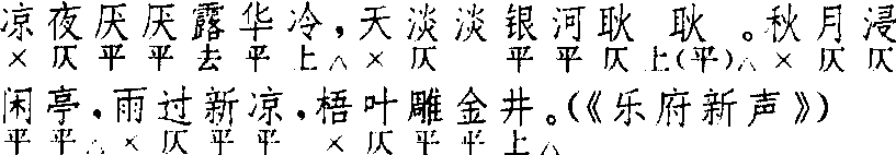 ☚ 少年游 浪淘沙 ☛ 醉花阴 醉花阴古体侯克中 散套 ![]() 全曲五句:7△,6△。5△,4,5△。 其二 近体 前人 ![]() 全曲七句:7△,6△。5△,4,5△。5△,7△。近体前五句同古体,曲末多二句,系从次牌〔喜迁莺〕首移前。〔醉花阴〕与〔喜迁莺〕例须连用,〔喜迁莺〕移前二句,但两曲总句数仍不变。元曲早期用古体,后期及明人习用近体。侯克中此套首牌及次牌原为古体,明刊《盛世新声》、《词林摘艳》、《雍熙乐府》均改从近体。他如元刊本《气英布》、《魔合罗》均古体,而《元曲选》本即改为近体。侯曲近体第六句“困腾腾瘦了身形”为五字句,“腾”字应仄;因侯曲〔喜迁莺〕首句古体原为三字句,“腾”字平声,明本用近体,添“瘦了身形”改为五字句,而原“困腾腾”未改,以致平仄失调。《雍熙乐府》本另作“对景谩伤情”五字句,则调谐矣。 套数首牌。古体同词牌。王伯成《天宝遗事》诸宫调《杨妃出浴》“腻水流清涨新绿”套用幺篇,系沿用词体,北曲只用词体前篇,无用幺篇者。〔醉花阴〕后不连用〔喜迁莺〕时只用古体。南北合套则须近体。幺篇,即后篇;“后”繁体作“後”,“幺”为“後”字省写,说见张相《诗词曲语辞汇释》。“幺”又作“么”。幺篇可简称幺或么。 ☚ 黄钟宫 喜迁莺 ☛ 醉花阴 醉花阴见宋毛滂《东堂词》。《词律》卷七列李清照一体。《词谱》卷九列毛滂一体(檀板一声莺起速),双调,五十二字,上、下片各五句三仄韵。下片第二句或作上一下四句法。又换头句第四字宜用韵,即张炎《乐府指迷》所谓“藏短韵于句内”者。又清陶梁辑《词综补遗》收宋米友仁“一阳来复群阴往”一首,题《醉春风》,与此调悉同。 ☚ 醉红妆 醉花间 ☛ 醉花阴李清照
