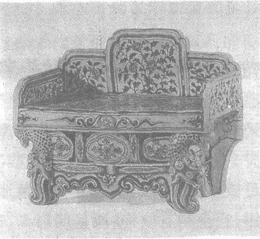 | 释义 | 釉里赭花卉纹瓷神座 釉里赭花卉纹瓷神座元。高24.1厘米,长29厘米。北京故宫博物院藏。此神座造型端庄气派,靠背呈“山”字形,左右有扶手,足作鱼形,极富装饰性。座身以写实性较强的缠枝花为主要装饰,配以图案化的云纹和花卉。繁密的釉里赭色花纹与釉里红相比别有一番风韵。在元代,成功的釉里红瓷器已属珍品,这种釉里赭则更为罕见,其珍贵可想而知。
