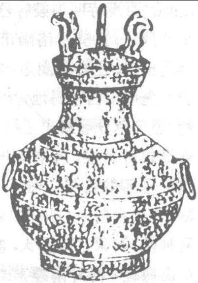 | 释义 | 古代名物 > 日用類 > 宴飲部 > 貯酒器 > 錯金銀鳥篆文壺 錯金銀鳥篆文壺 cuòjīnyínniǎozhuànwén hú 西漢時代青銅酒器。1968年河北滿城中山靖王劉勝墓出土。同時出土兩件,大小形狀大抵相同,應為一對。其一高四四·二厘米,口徑十五厘米。另一件高四十厘米。圓腹,圈足,二環耳。有蓋,蓋上有似雲紋的三紐。此器綺麗精美,蓋及器身均用纖細之金銀絲錯出鳥篆和花紋。鳥篆流行於春秋戰國時期。西漢初期的鳥篆銅器,此為初見。烏篆铭文四十二字,每三字或四字一句,句未有韻。内容反映了追求物質享受和祈求長生的思想。