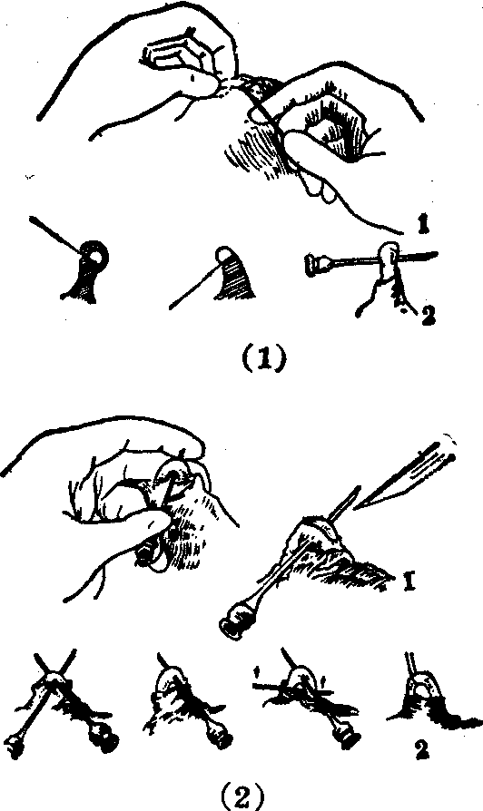 (1)切开输精管鞘膜及针挑(2)挑出不带鞘膜输精管